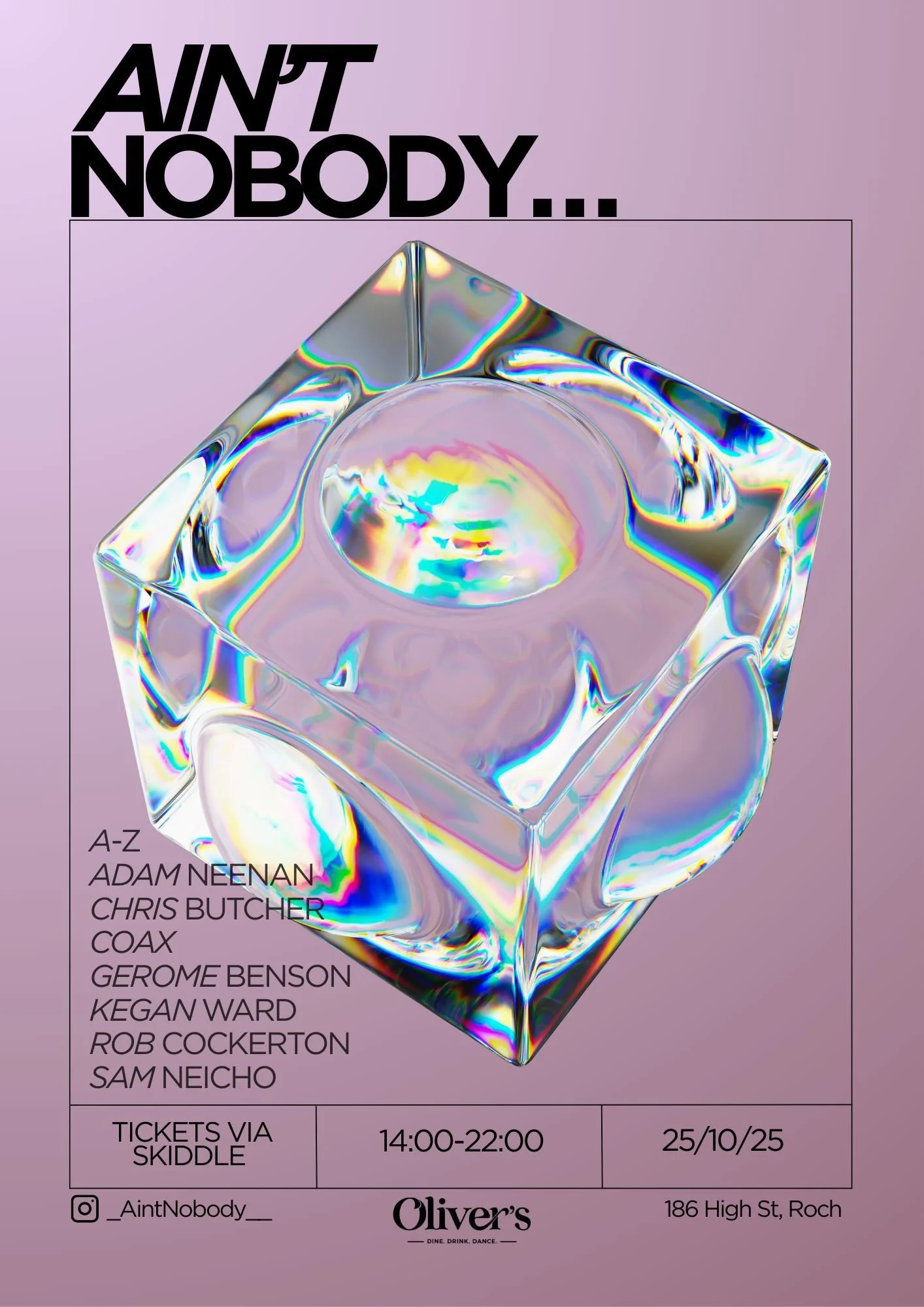 Ain’t Nobody takes over Oliver’s with a stacked line-up including Adam Neenan, Chris Butcher, Coax, Gerome Benson, Kegan Ward, Rob Cockerton & Sam Neicho.🎶 Expect deep grooves, rolling house & dance floor energy