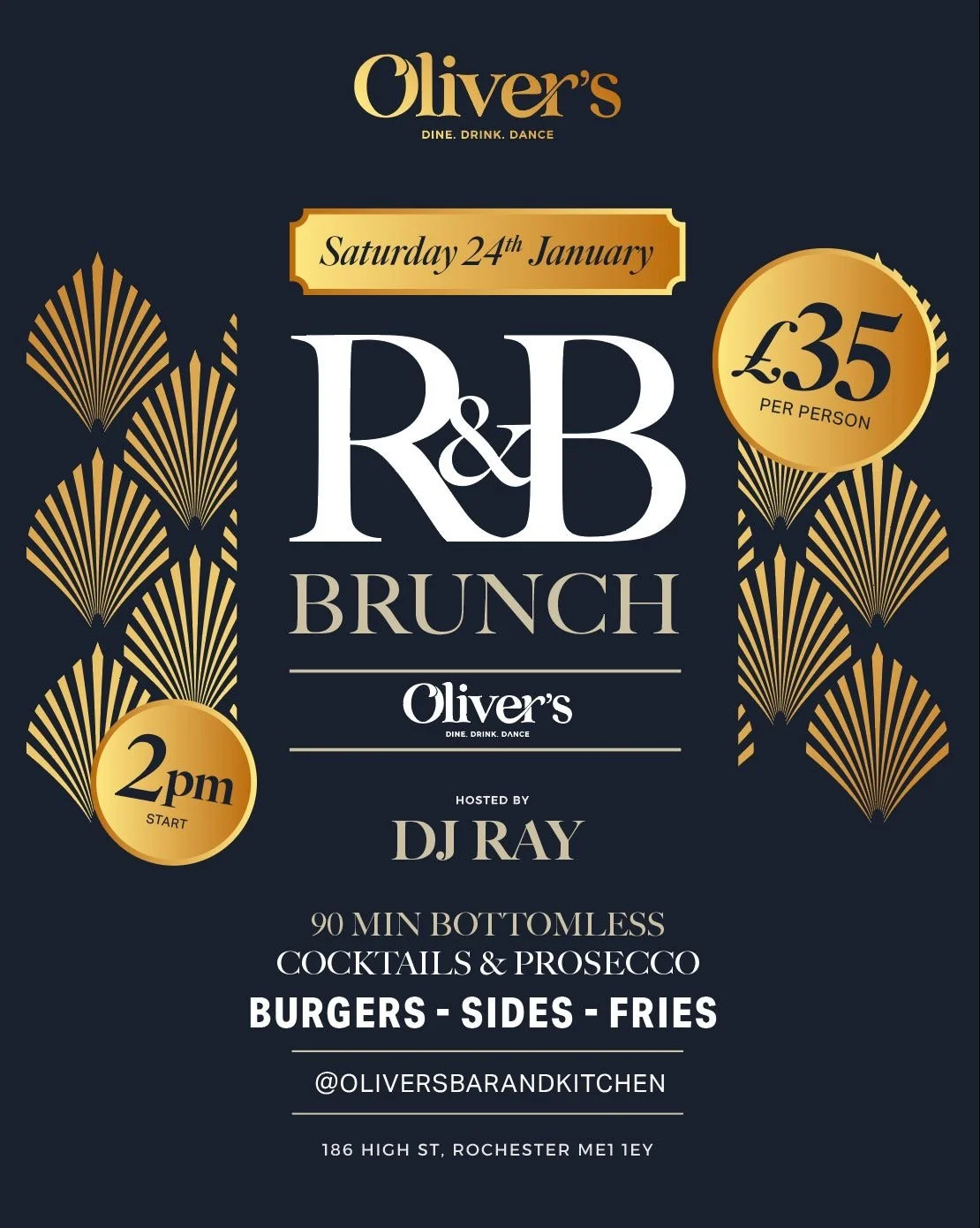 To book please email us at info@oliversrochester.com or call 01634 847629