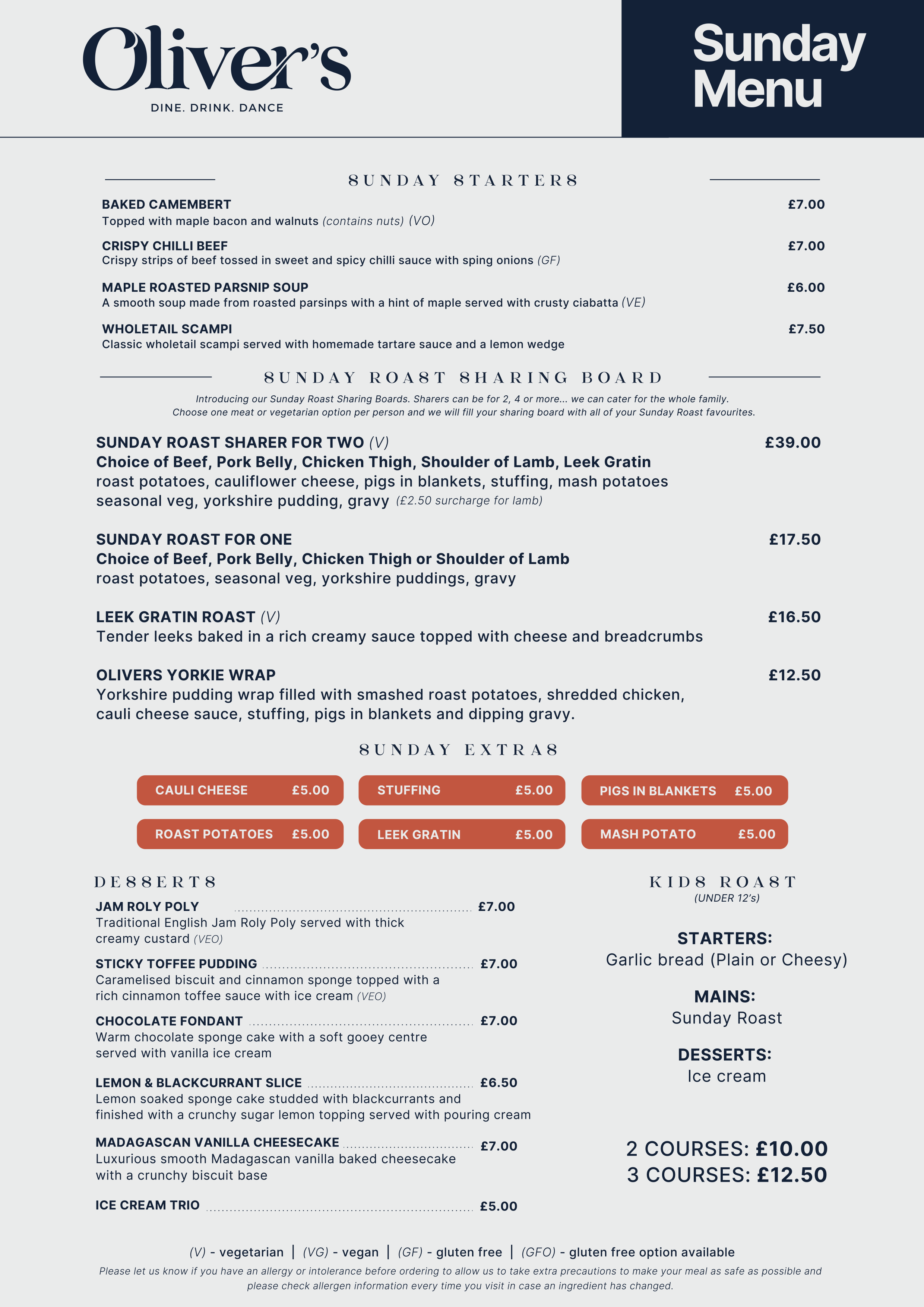 SUNDAY MENU